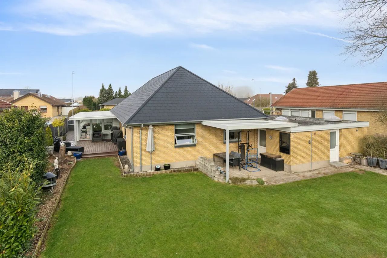 Villaen er beliggende i en dejlig lukket have med flere gode terrassemiljøer og en stor indkørsel med plads til flere biler. Beliggenheden er i et populært villakvarter midt i Tarup og tæt ved alle dagligdagens faciliteter, herunder indkøb med bl.a. indkøbscentret Tarup Center, skole, bybus, letbanen, grønne områder, gode tilkørselsforhold til motorvejsnettet og kun ca. 4 km til Odense Centrum.