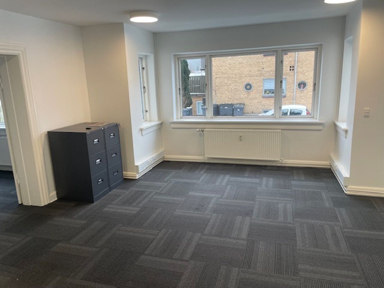 Lejligheden er p.t indrettet til kontor indeholder: 2 store sammenhængende stuer/kontorer i forskudte plan, fransk dør til værelse/stue/selvstændigt kontor, mellemgang med adgang til ældre køkken med spiseplads, ældre badeværelse med bruseniche, stort værelse/kontor.